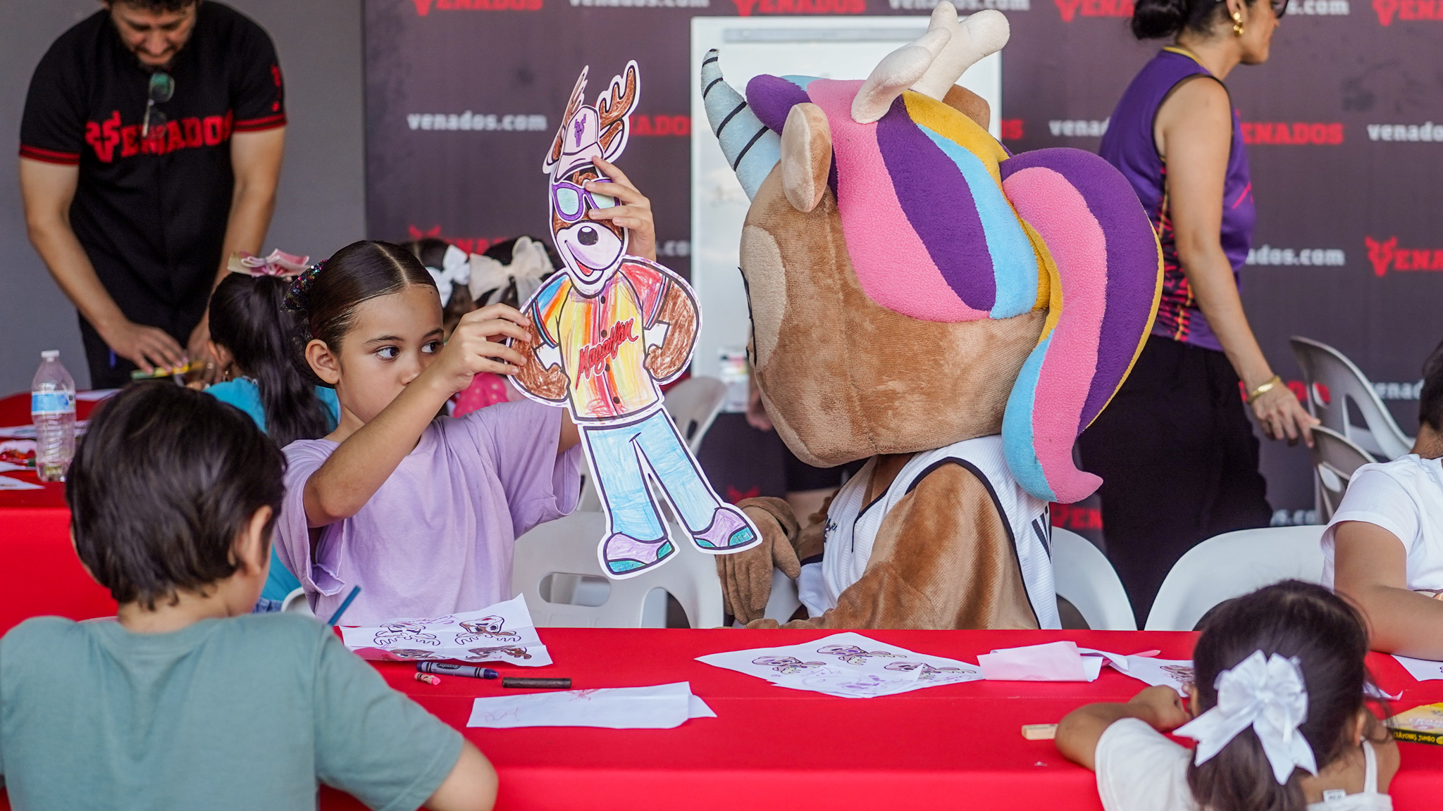 Durante el Taller de Dibujo los niños convivieron con las mascotas Venny y Vennicornia, mismos que entregaron obsequios a los pequeños artistas.