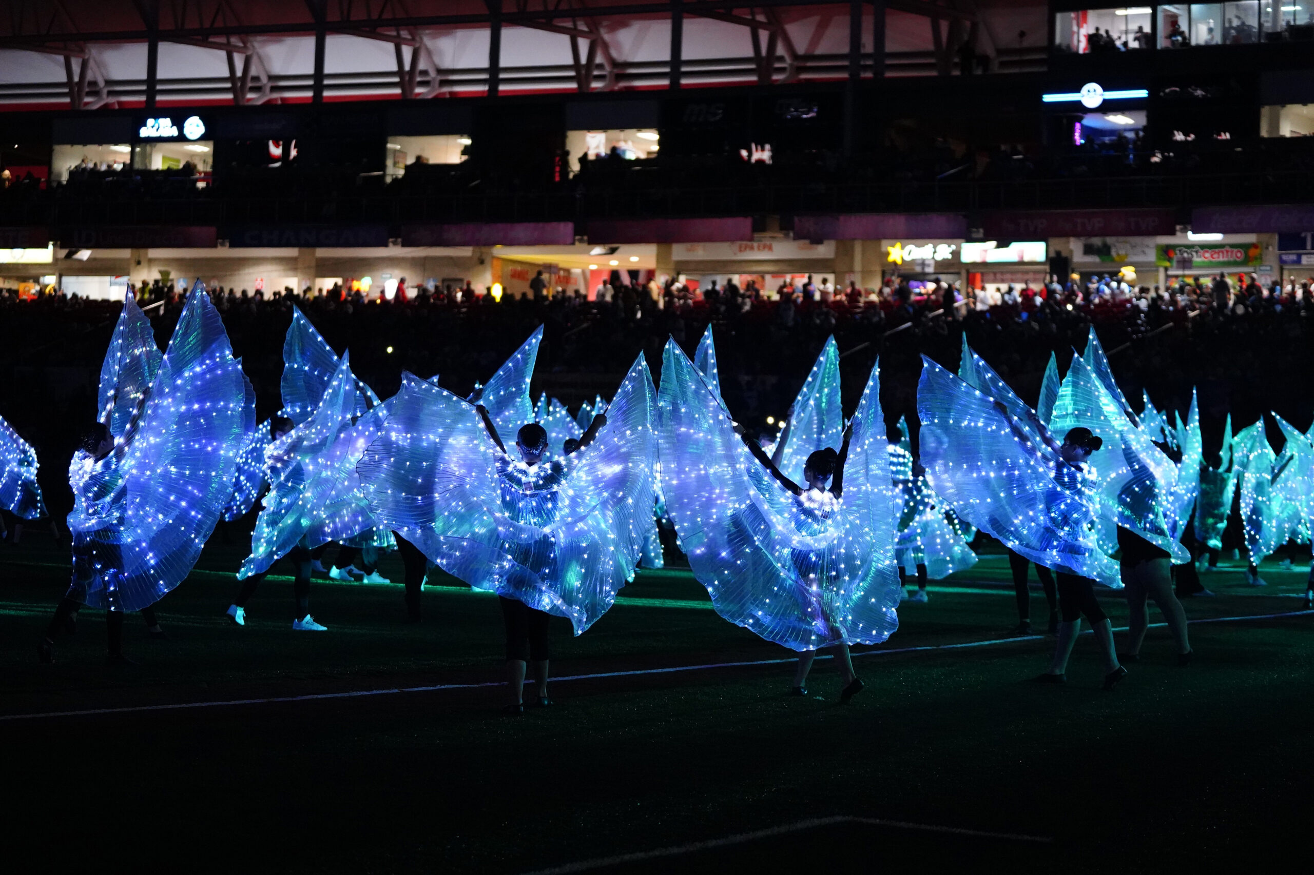 Seguido el campo se iluminó con un bailable simbólico de los 80 años de historia del club, el momento más emotivo llegó cuando los jugadores leyenda Juan José Pacho, Heber Gómez, José Luis García y Cristian Quintero ingresaron al terreno de juego para pasar la estafeta a las nuevas generaciones del club, para después tomarse la foto oficial.